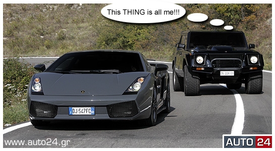 Να κάνεις μια παράλληλη δοκιμή της πιο ελαφριάς Lamborghini, της Superleggera («σουπερλετζέρα» - «υπερ - ελαφριά» στα ιταλικά) και του συλλεκτικού «τζιπ» LM002 (1986), με διαφορά της πιο βαριάς κατασκευής της εταιρείας με σήμα τον μαινόμενο ταύρο, είναι σαν να έχεις βγει... «ραντεβού στα τυφλά» με δύο τους... τέσσερις φανταστικούς. Και μάλιστα τους πιο ενδιαφέροντες! Την... ανάλαφρη, δυνητικά αόρατη, πανέμορφη ξανθιά, τη Sue Storm (Σου Στορμ) και τον... μασίφ ογκόλιθο Ben Gream (Μπεν Γκριμ)! Το ποιο... «όχημα» είναι ποιος, ή μάλλον σε ποιόν φανταστικό χαρακτήρα θα ταίριαζε ποιο όχημα, είναι εύκολο να το βρει κανείς...