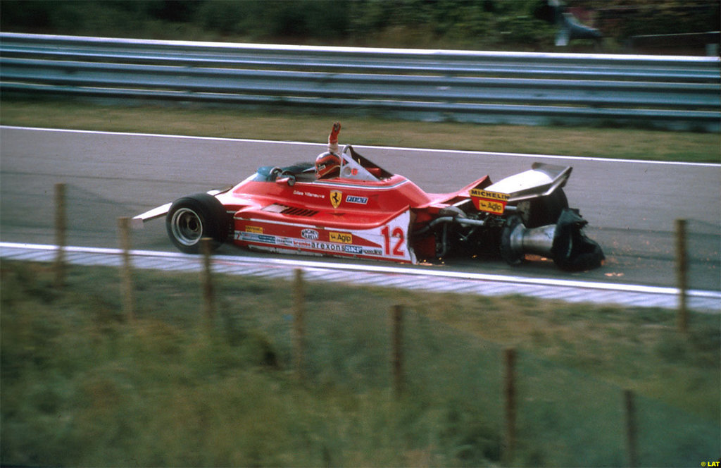 Ζάντβοορτ Ολλανδία, 26 Αυγούστου 1979. Αφού ο Βιλνέβ έχει προσπεράσει εκπληκτικά τη Williams του Αλαν Τζόουνς στην παρατεταμένη καμπή «Tarzan» από την εξωτερική με... ανάποδο τιμόνι και προηγείται, το απότομο σκάσιμο του πίσω αριστερού ελαστικού τον βγάζει εκτός πίστας. Δεν το βάζει κάτω. Κάνει ένα νέο τετ-α-κε αλλά επιλέγει την όπισθεν και επιστρέφει στο οδόστρωμα οδηγώντας όσο πιο γρήγορα μπορεί. Με τρεις τροχούς... Το σκάσιμο του ελαστικού είχε οδηγήσει και στο σπάσιμο της ανάρτησης. Η εικόνα της Ferrari 312 T4 να βγάζει σπίθες από το σύρσιμο της ζάντας, με τον Βιλνέβ να οδηγεί με σηκωμένο το χέρι για να ειδοποιεί για το πρόβλημα, έχει περάσει στην ανθολογία της Formula 1. Ακατάβλητος... Θα παραιτηθεί μονάχα όταν φτάσει στα πιτς και οι μηχανικοί τού εξηγούν ότι δεν έχει νόημα να συνεχίσει. «Με δυσκολία καταφέραμε να τον πείσουμε να σταματήσει» δηλώνει ο Τζούλιο Μπορσάρι. Ο «πυρετός Βιλνέβ» («La febbre Villeneuve») φουντώνει...